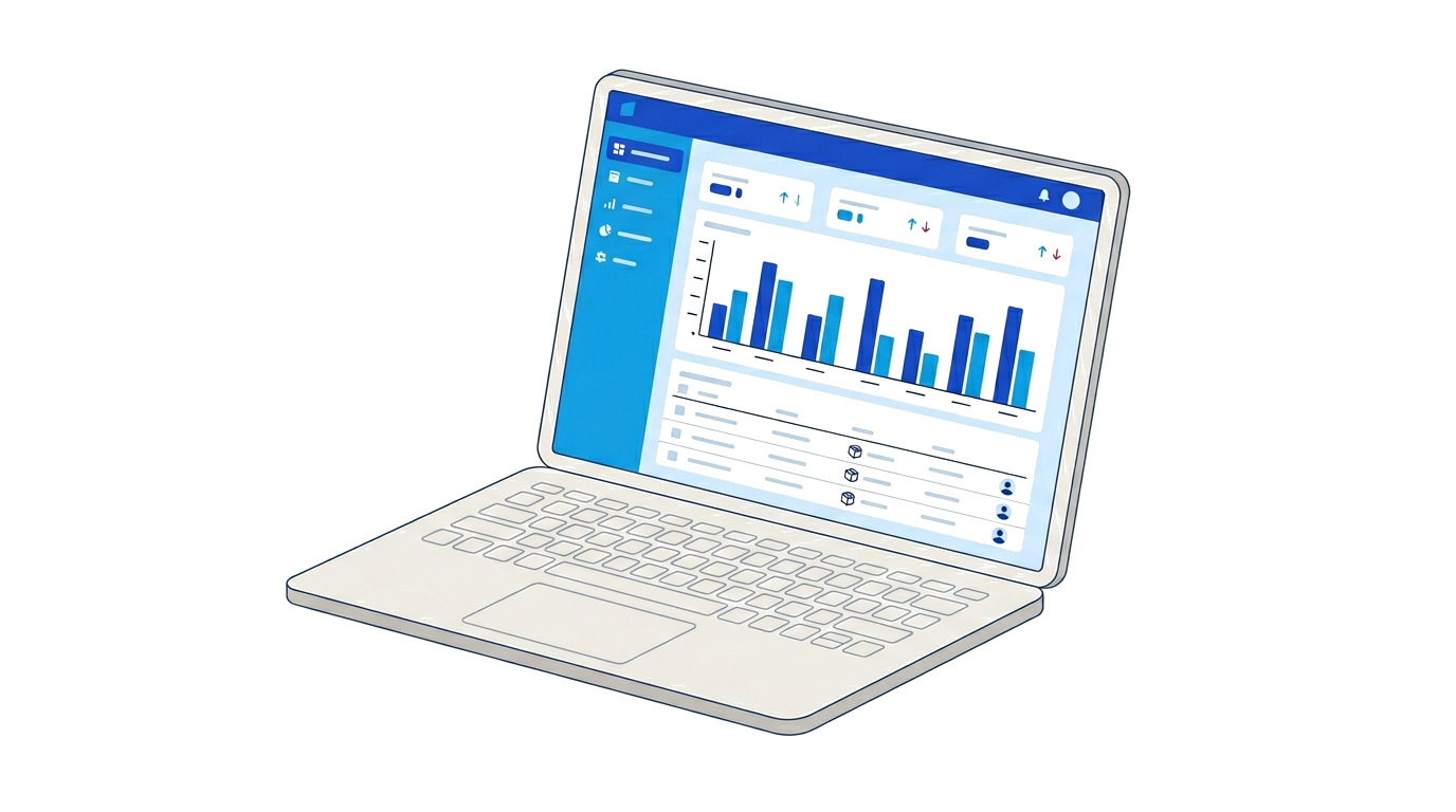 売上・注文・顧客数をリアルタイムで確認。月別トレンドチャートやパフォーマンス指標を美しいカードで表示。毎朝開くだけで状況が分かります。